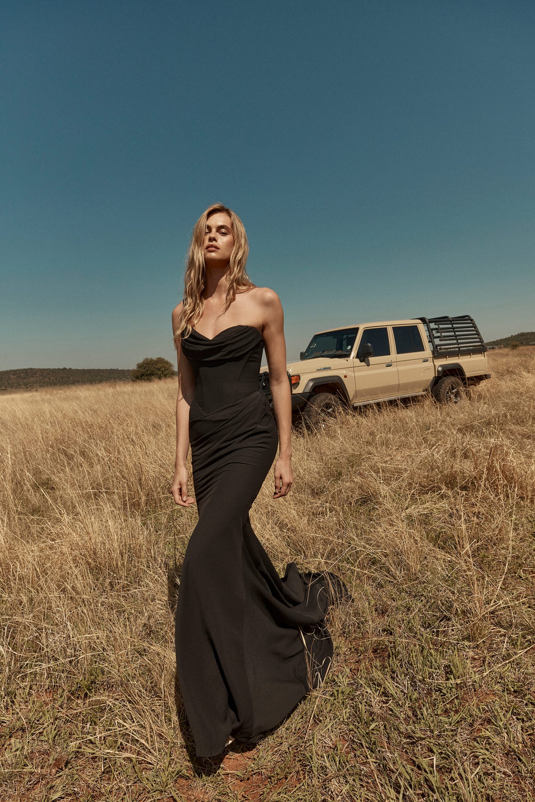 The Isola B Gown is a striking one-shoulder creation in luxurious crepe, draped gracefully to contour the body. Featuring exposed boning for a structured, corset-inspired fit and delicate draping around the hips, this gown celebrates the female form with timeless confidence. Available in ivory or black, it is the epitome of modern sophistication and quiet power.